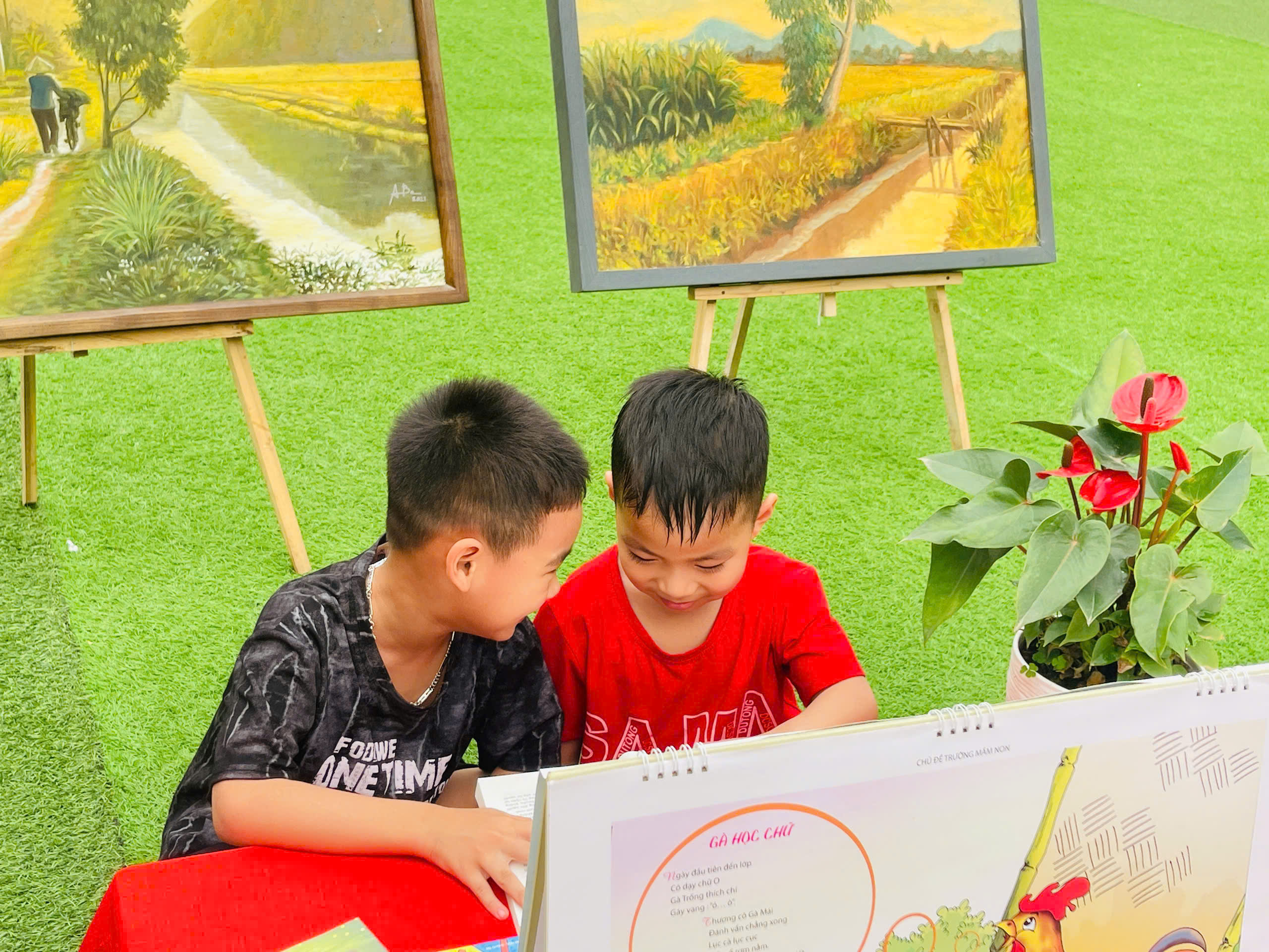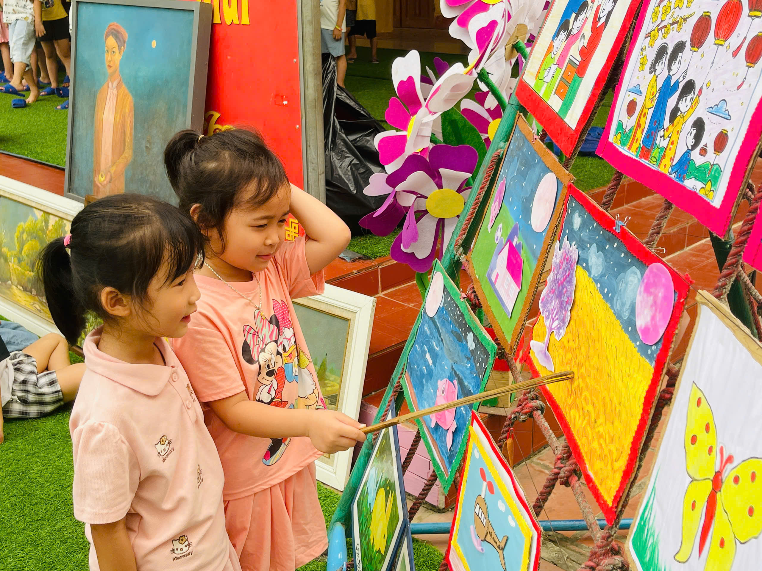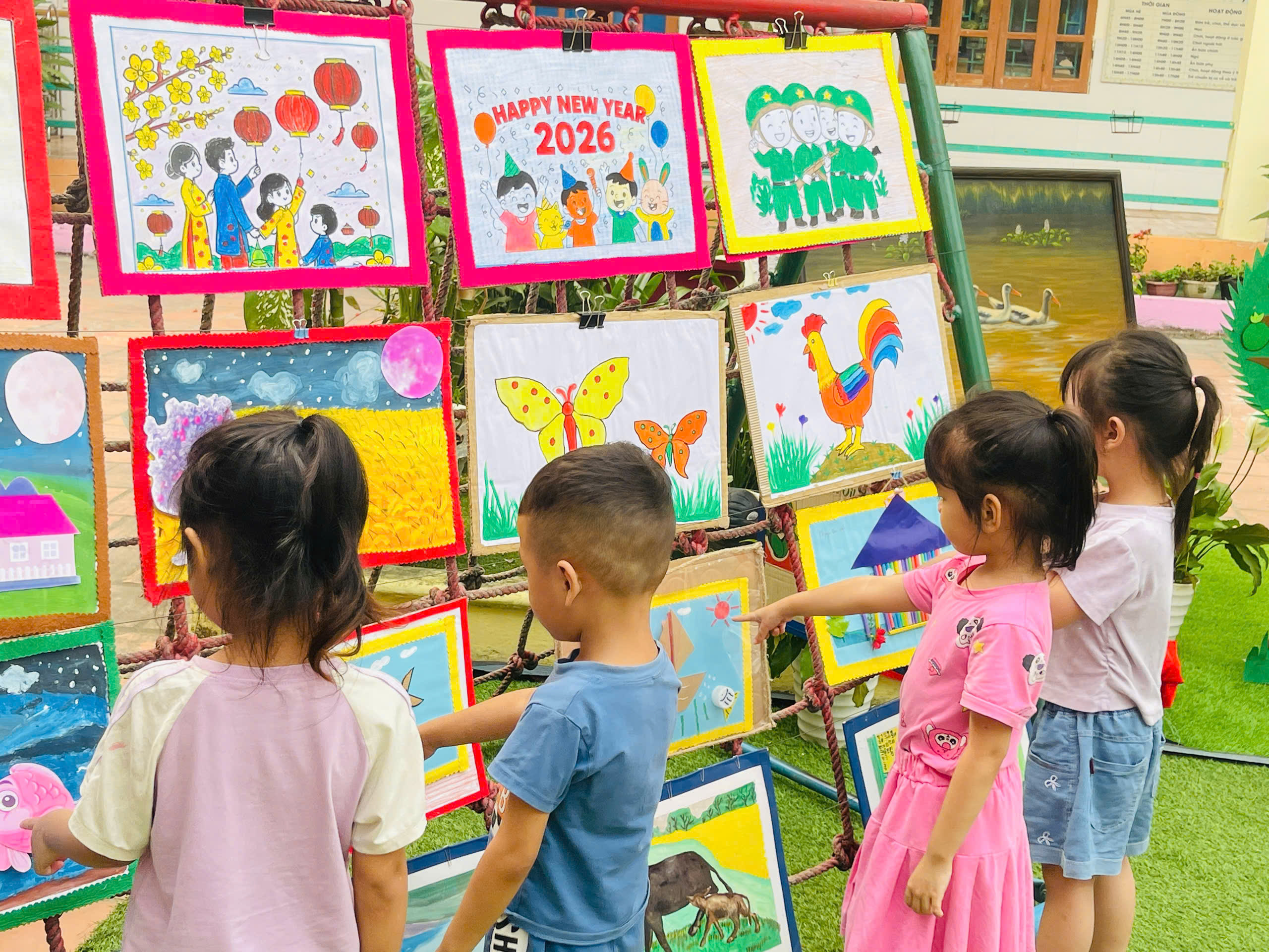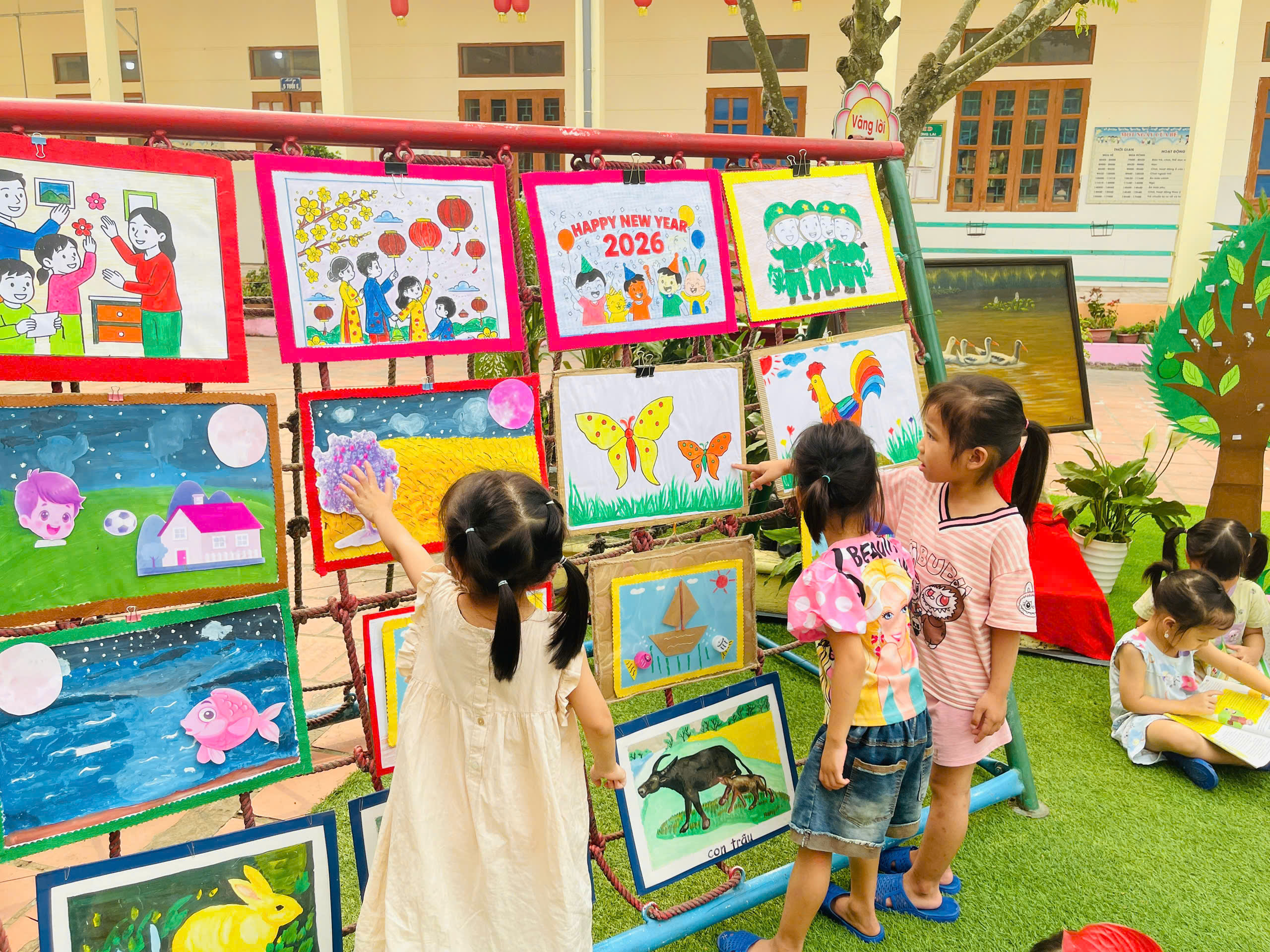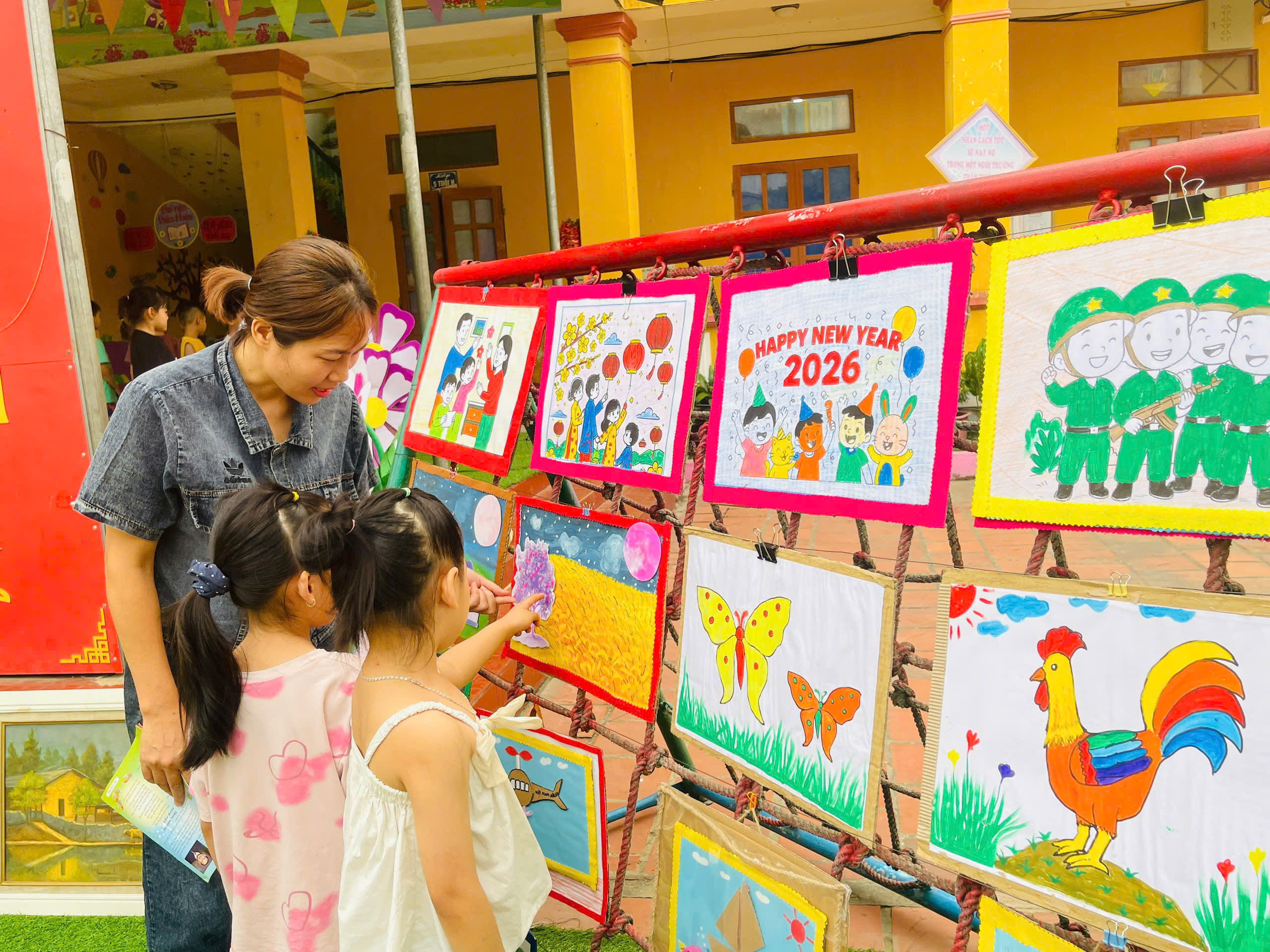 Những góc trưng bày được thiết kế sinh động với đa dạng các loại sách, truyện tranh phù hợp lứa tuổi mầm non. Đặc biệt, các sản phẩm do chính tay các bé và cô giáo cùng thực hiện đã tạo nên một không gian gần gũi, thân thiện và đầy sáng tạo.