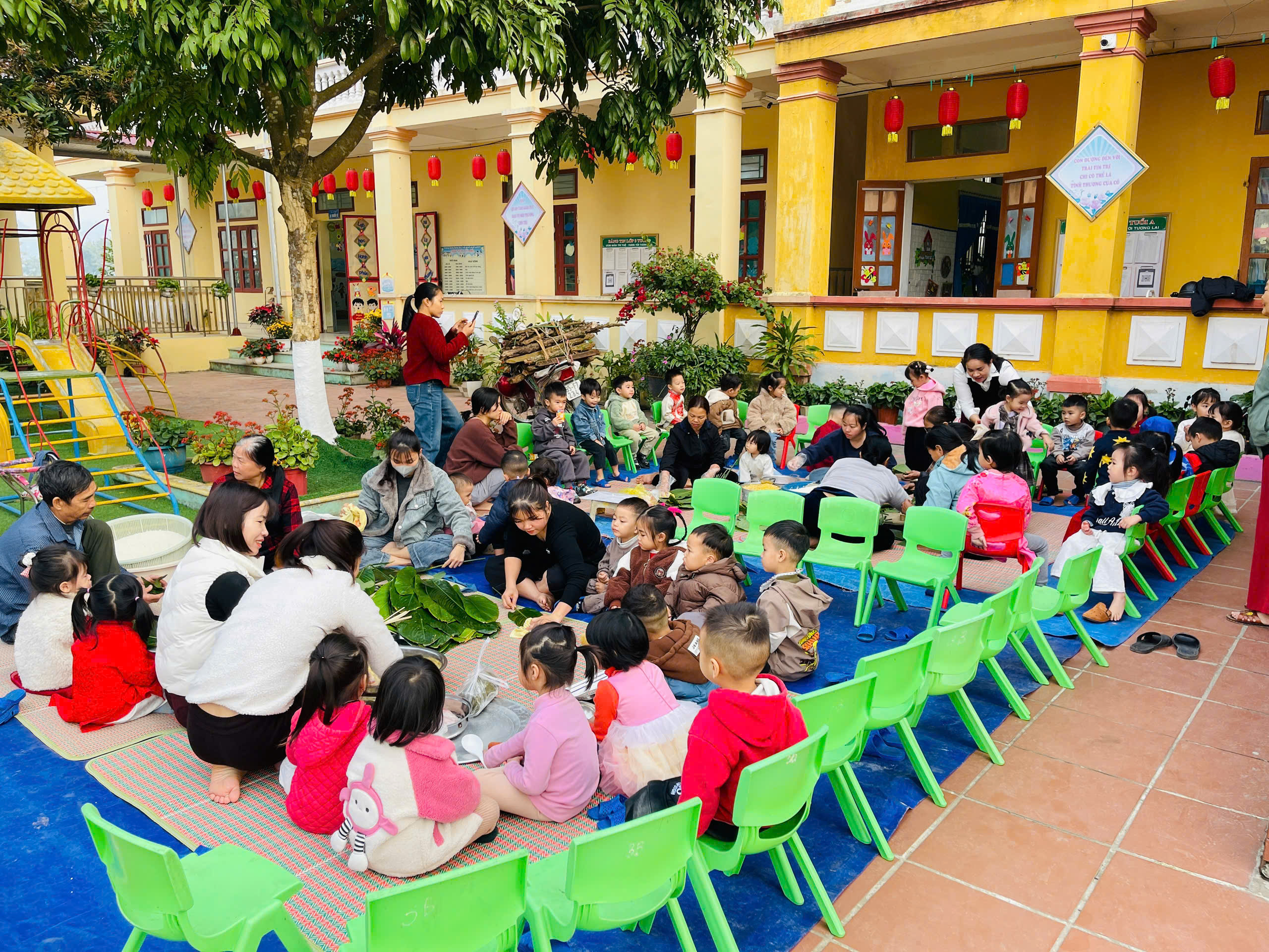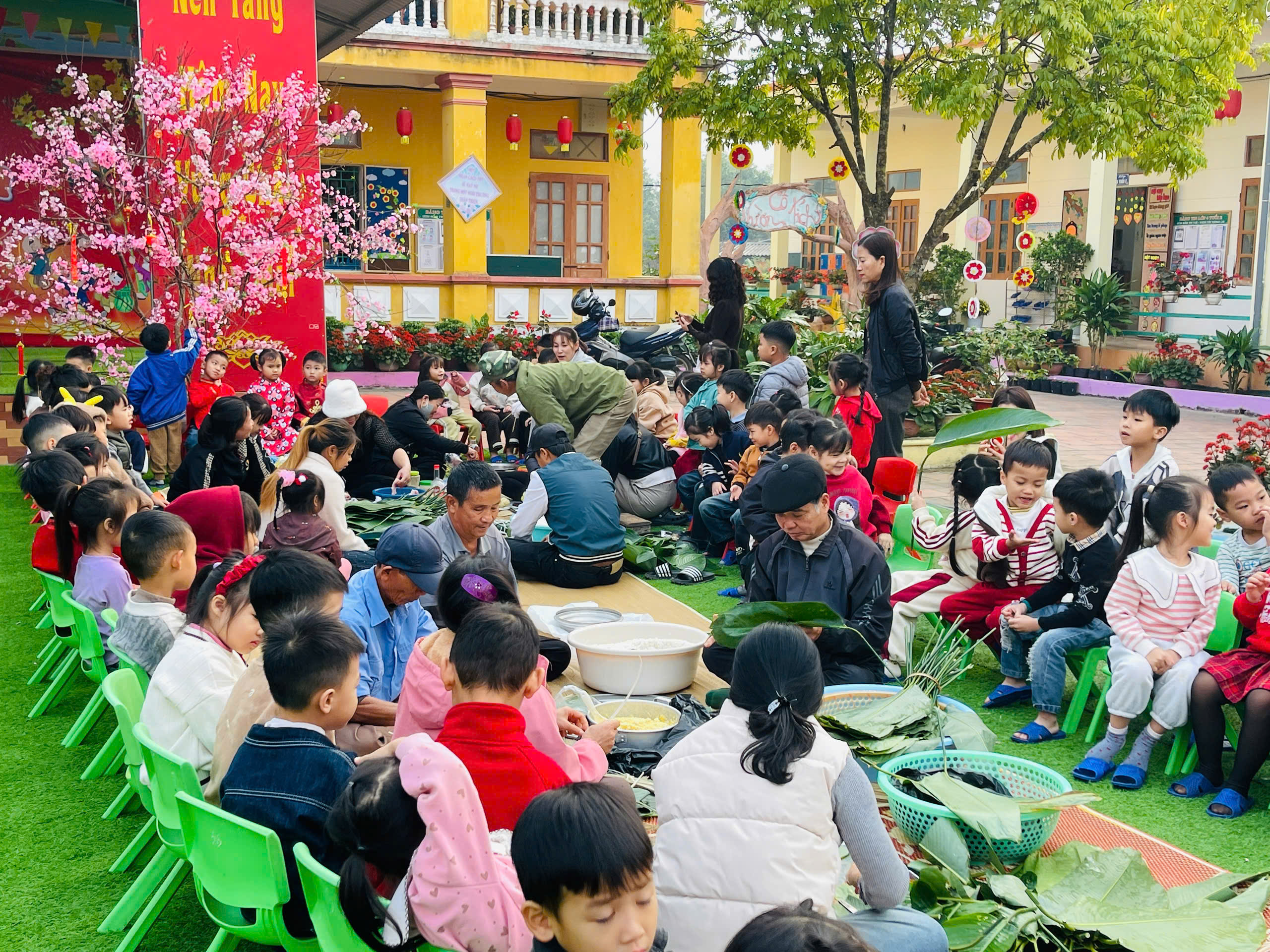 Với mong muốn giúp trẻ mầm non được tiếp cận văn hóa truyền thống bằng những trải nghiệm gần gũi và chân thực, Trường Mầm non Thạch Bình đã tổ chức hoạt động trải nghiệm gói bánh chưng với sự tham gia, đồng hành của ông bà, bố mẹ .