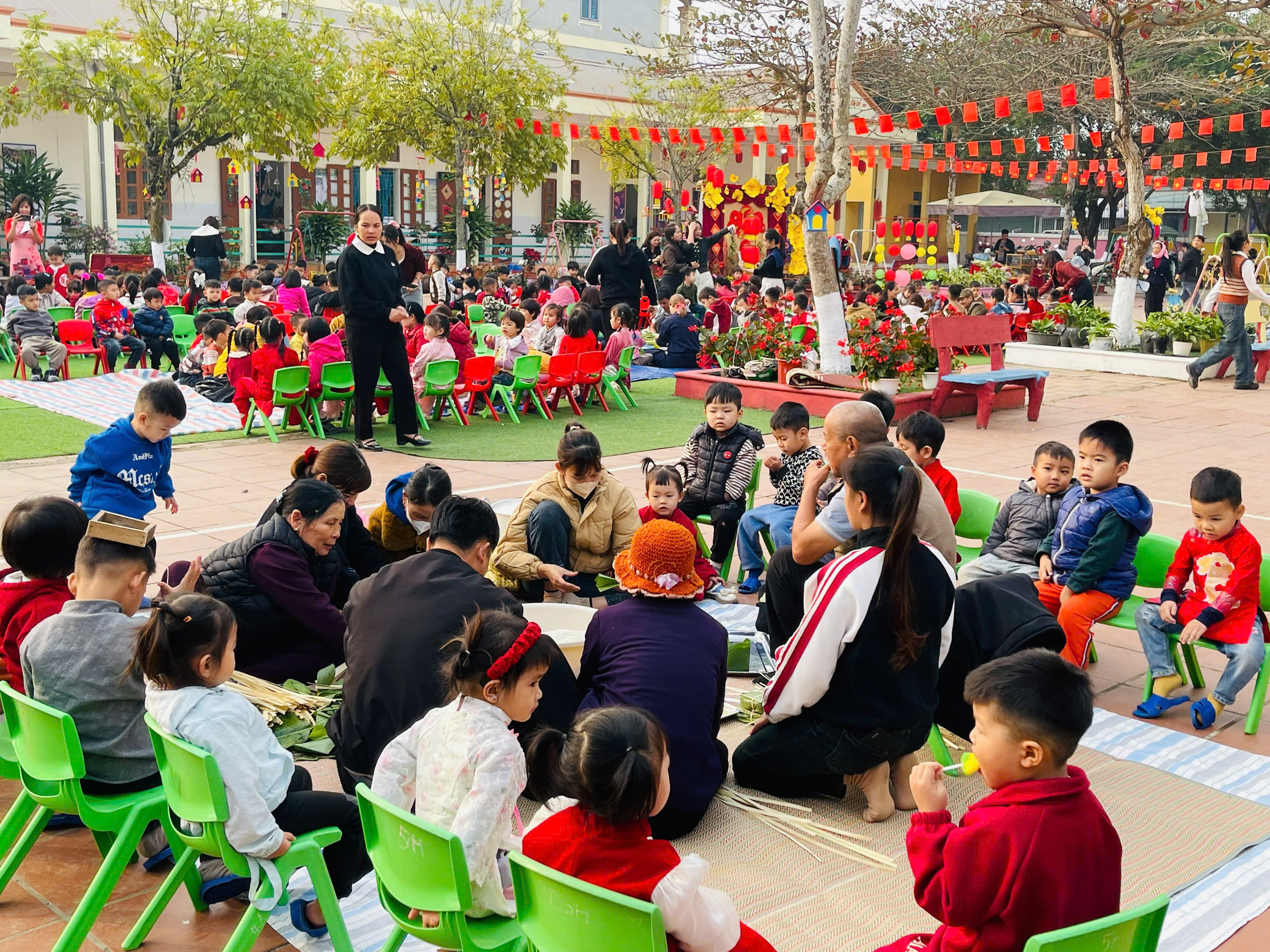 Quan trọng hơn, trong khoảnh khắc được ở bên ông bà, bố mẹ và thầy cô, trẻ cảm nhận rõ ràng sự yêu thương, sự gắn kết giữa các thế hệ. Chính những trải nghiệm đó đã góp phần hình thành ở trẻ tình cảm gia đình, lòng trân trọng truyền thống và những giá trị đạo đức ban đầu – nền tảng quan trọng cho sự phát triển nhân cách sau này.