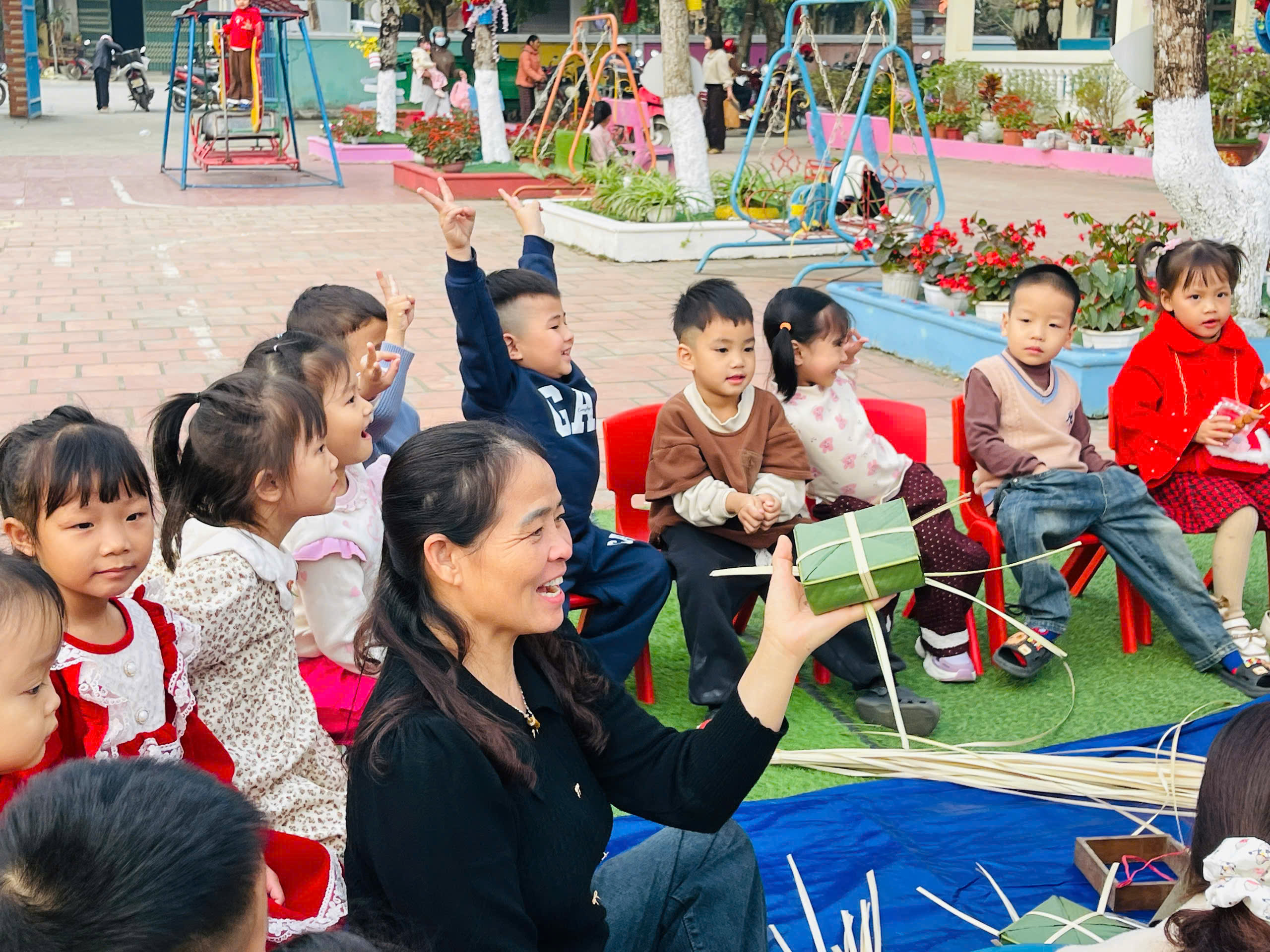 🌿 Hoạt động gói bánh chưng không chỉ giúp trẻ “biết” về Tết cổ truyền, mà còn để lại trong lòng các con những ký ức đẹp, ấm áp; từ đó gieo mầm yêu thương, bồi đắp tâm hồn và nuôi dưỡng những giá trị bền vững ngay từ tuổi mầm non.